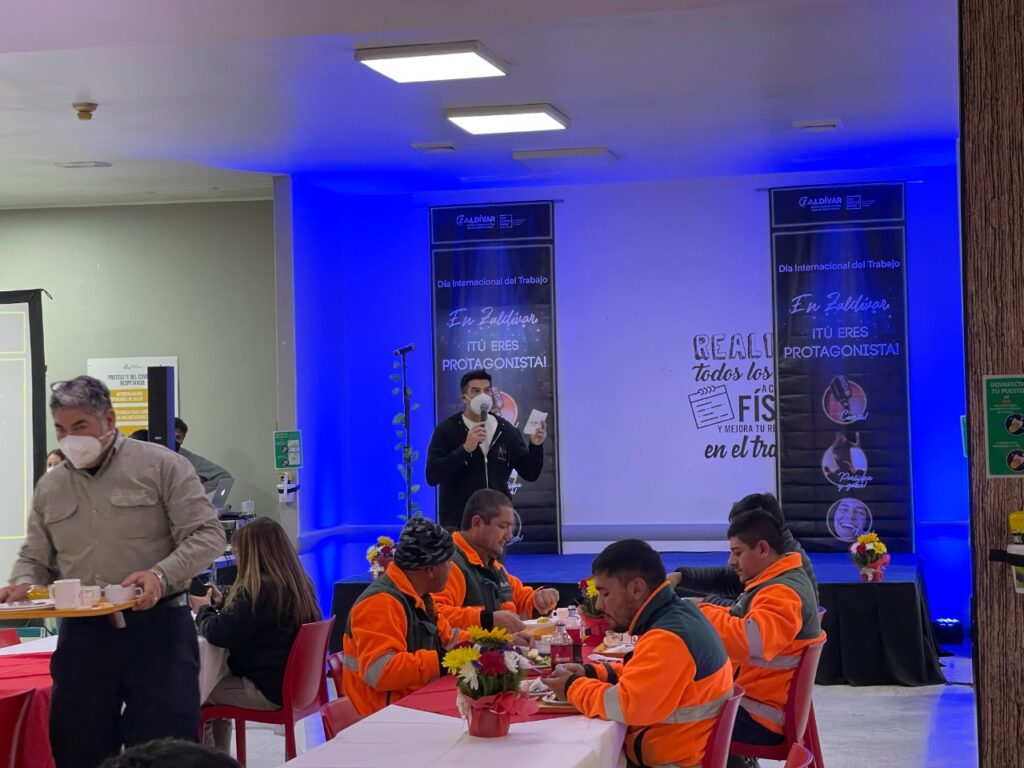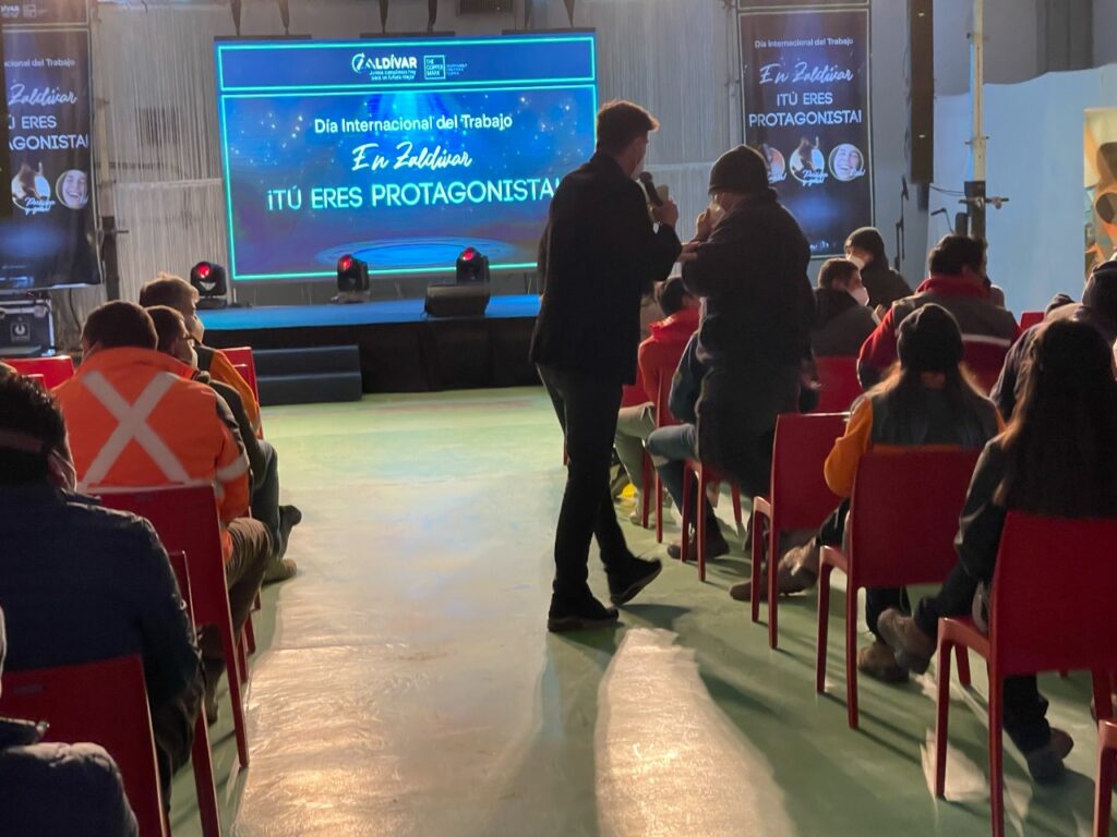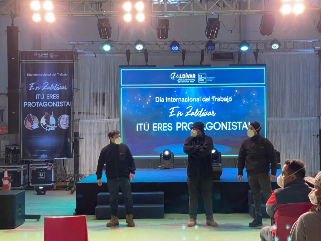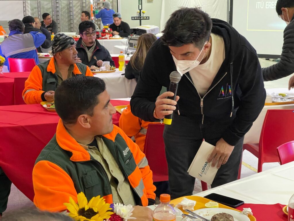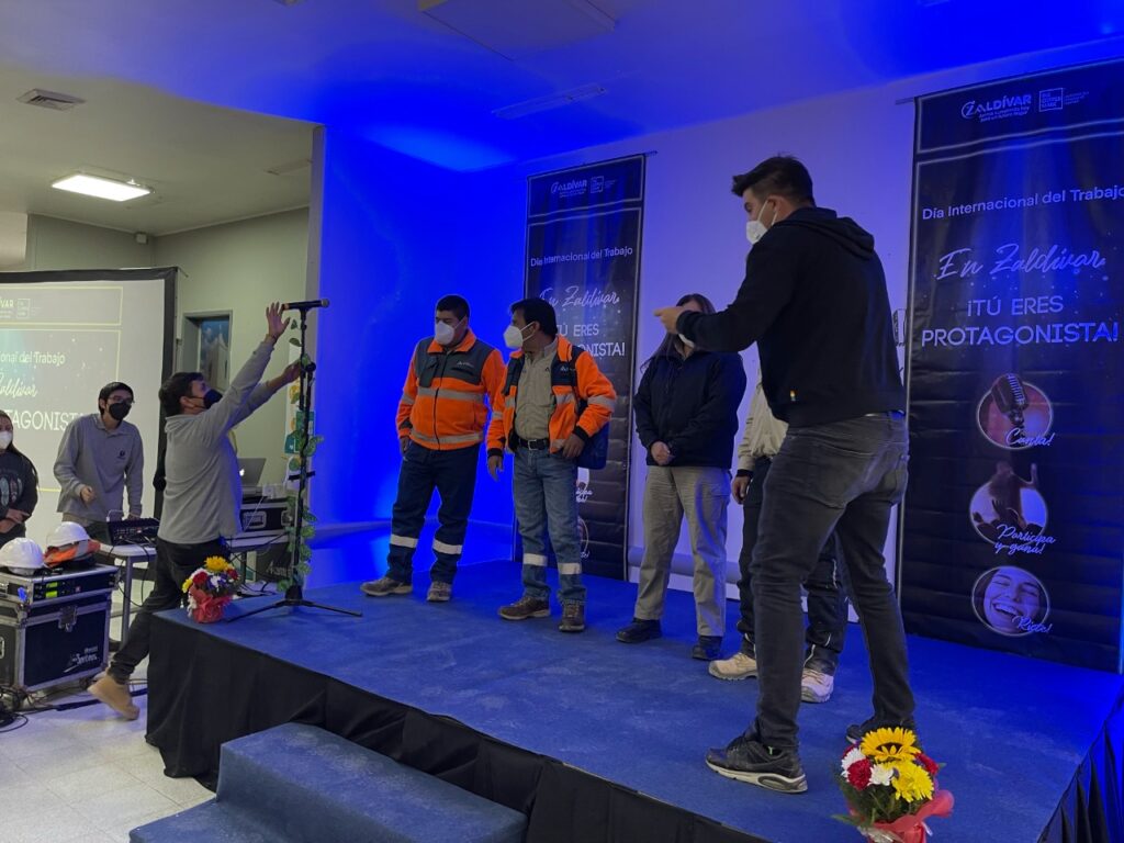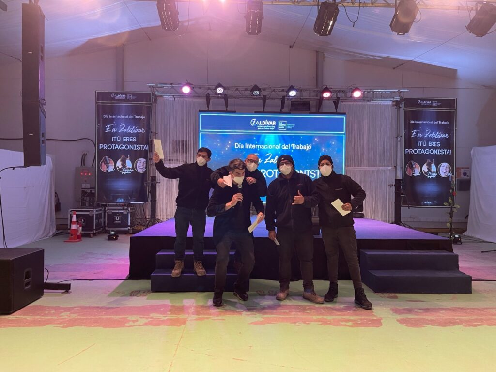 Cenas mejoradas, la presentación del humorista Arturo Ruiz-Tagle y la animación del rostro televisivo, Mario Velasco, fueron parte de las actividades con las que los y las trabajadoras celebraron el Día del Trabajo en Minera Zaldívar.