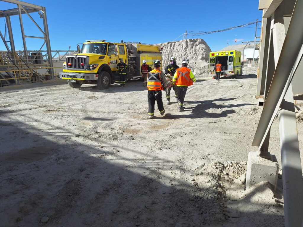 Como parte del programa anual de simulacros, el equipo de emergencias de Minera Zaldívar realizó una maniobra de ensayo en el túnel de las correas 14 A y 14 B. El procedimiento combinó un incendio con el rescate de una persona afectada, poniendo a prueba los tiempos de respuesta y la capacidad de coordinación de la Compañía.